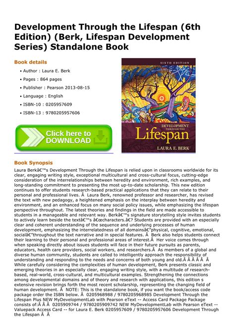 Read Online Development Through Lifespan 6th Berk Doc By Click Button. Development Through Lifespan 6th Berk it’s easy to recommend a new book category such as Novel, journal, comic, magazin, ect. You see it and you just know that the designer is also an author and understands the challenges involved with having a good book. You can easy klick for detailing book and you can read it online, even you can download it